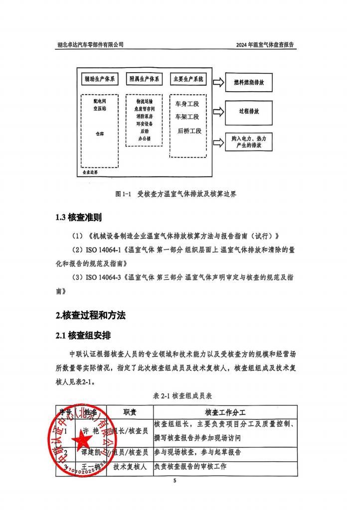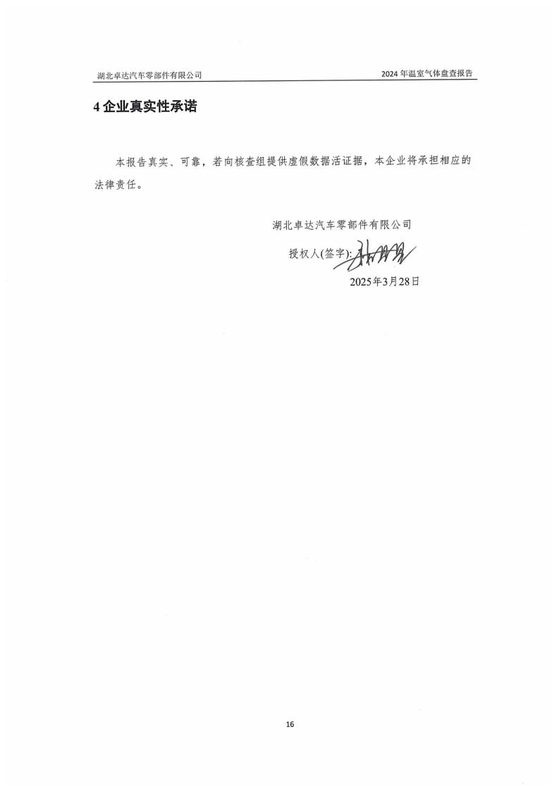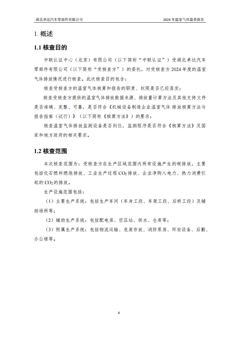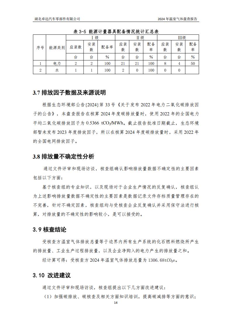 湖北卓達(dá)汽車零部件有限公司溫室氣體排放盤查報(bào)告