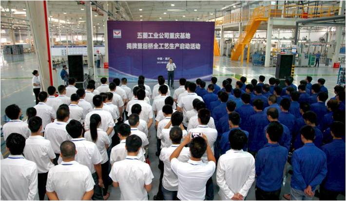 2015年8月18日上午,廣西汽車集團(tuán)所屬公司柳州五菱汽車工業(yè)有限公司(簡稱:五菱工業(yè)公司)重慶基地揭牌暨后橋全工藝生產(chǎn)啟動(dòng)活動(dòng)在重慶舉行。五菱工業(yè)公司副總經(jīng)理李薇旻、重慶基地項(xiàng)目團(tuán)隊(duì)、客戶代表等參加活動(dòng)并見證重慶基地揭牌。